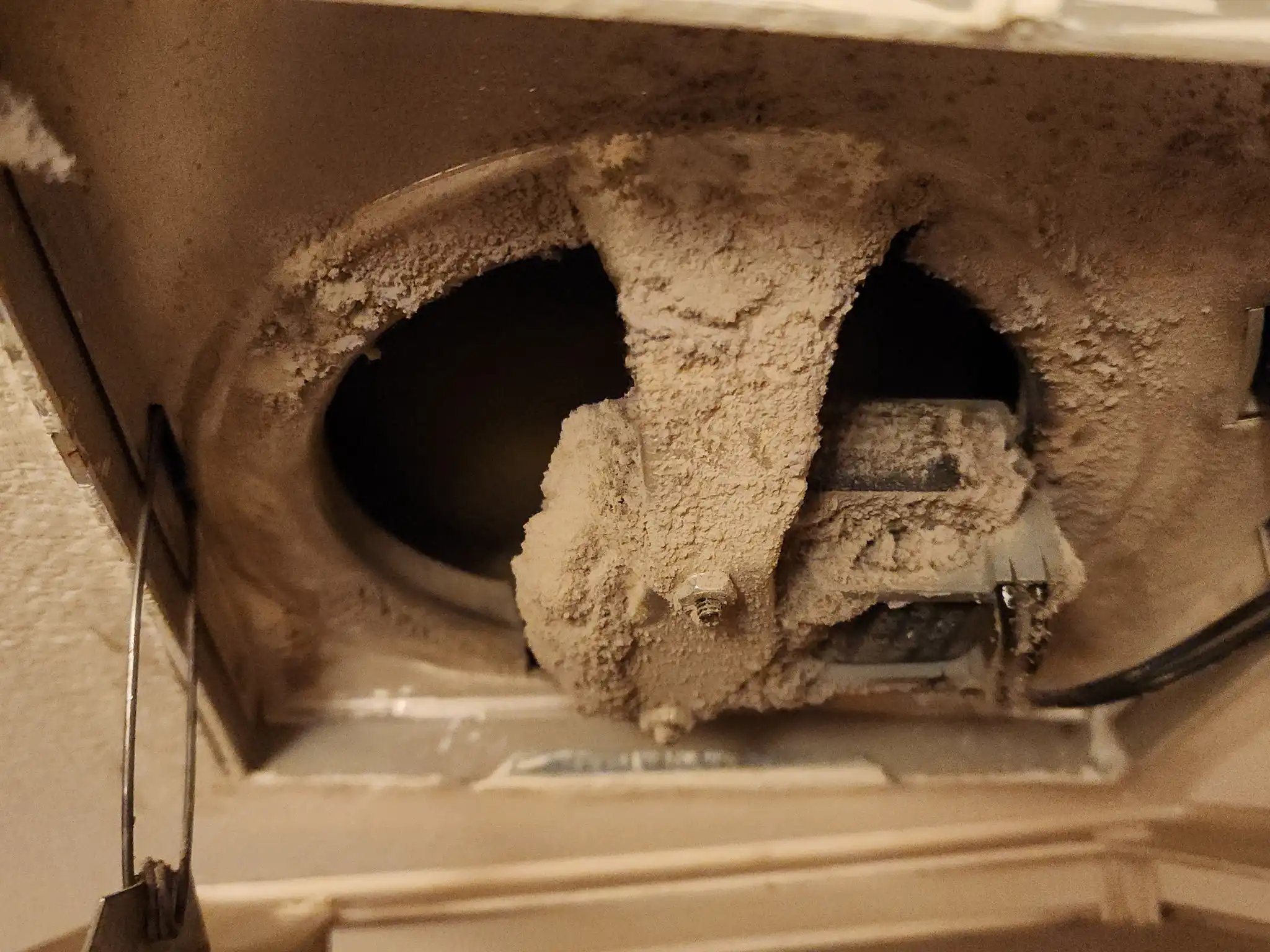 Over time, exhaust fans collect dust, lint, and debris that restrict airflow. When a fan becomes clogged, it can no longer effectively remove moisture, odors, or VOCs—allowing humidity and contaminants to linger in the bathroom and migrate into other areas of the home. This buildup increases the risk of mold growth, persistent odors, and reduced indoor air quality.